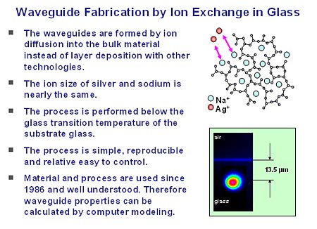 - State-of-the art ion exchange in special glasses provides the opportunity for lowest cost chip fabrication.